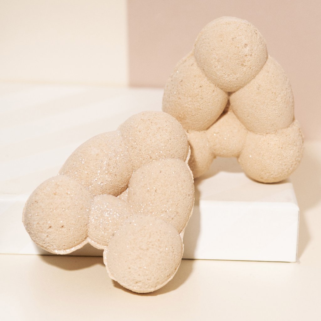 Třpytivá vánoční bomba plná vůně vanilkových rohlíčků. Pokud milujete tradiční vanilkové rohlíčky a máte pocit, že byste se v nich nejraději vykoupali, už vám nic nebrání. Kromě té dokonalé vůně je bomba plná bambuckého másla, které blahodárně hydratuje pokožku. Místo cukru je obalená ve třpytkách. Napusťte si vanu a užívejte si sladce splněný sen. Bomba do koupele obsahuje mořskou sůl pro dodání hořčíku a bambucké máslo, které krásně hydratuje pokožku. Baleno v eko papírovém sáčku.